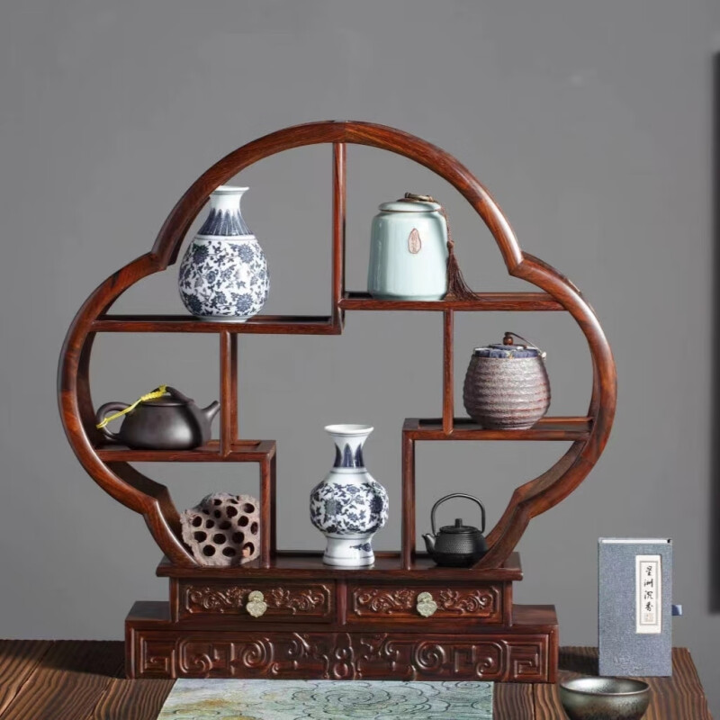 大红酸枝小梅花博古架规格56×12×56cm配包装锦盒